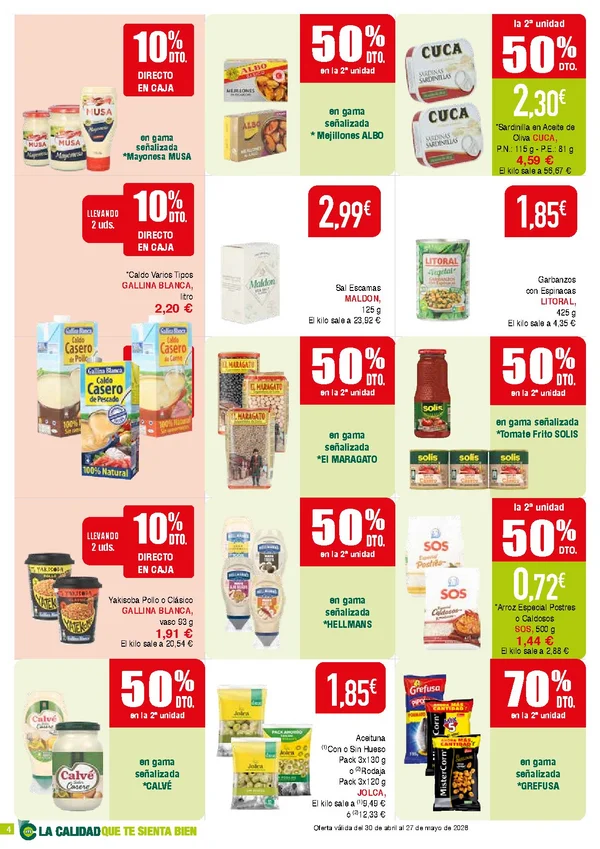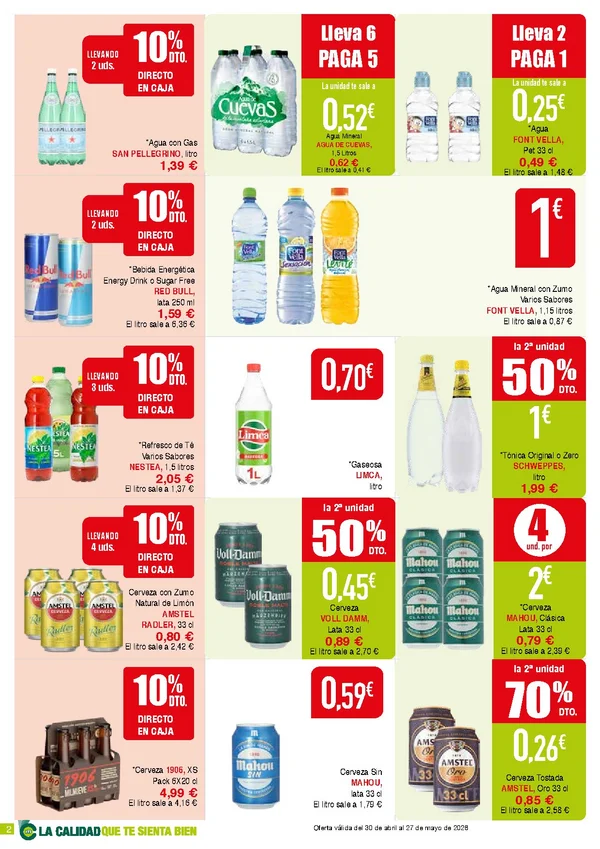 Precios en vigor del 30 de abril al 27 de mayo de 2026